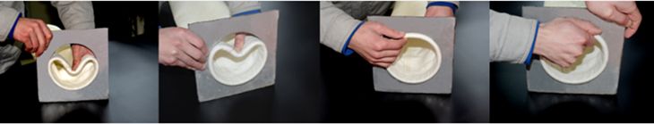 (4)一手固定隆起的“C”彈簧環圈的一邊位置,另一只手慢慢地讓彈簧環圈的另一邊伸展張開。將彈簧環圈的槽恰好嵌入花板孔內。