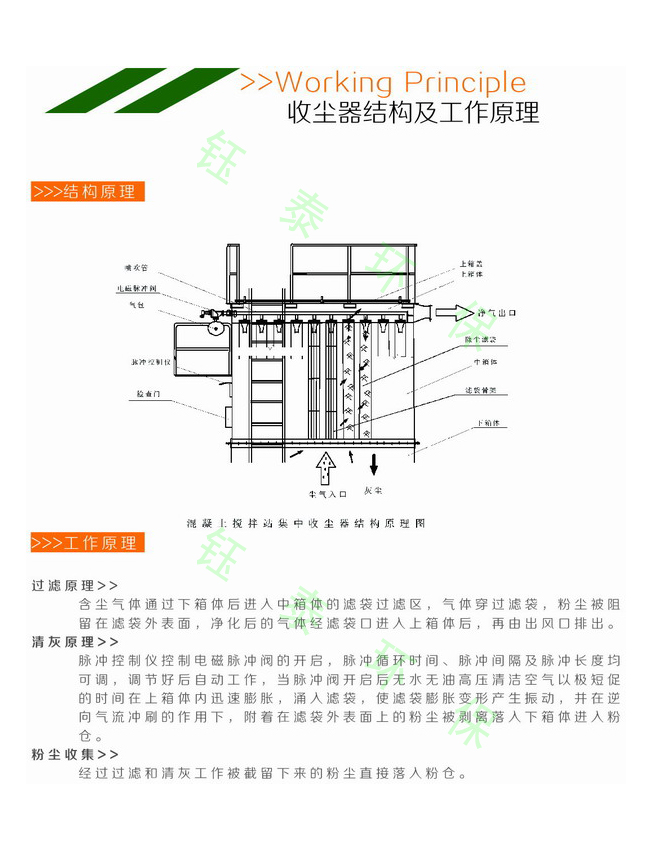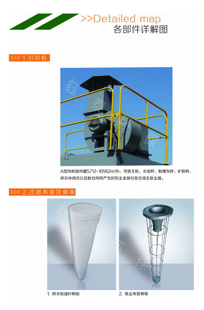 YT24倉頂除塵器主要應用于筒倉頂部進行收塵處理,是根據水泥、粉煤灰、石灰等各種粉狀物質的粒徑,設計其除塵器濾袋的O通過直徑并考慮附著力作用給濾袋孔徑的影響,使之完全可以滿足各類粉狀物質的過濾要求。水泥罐倉頂除塵器