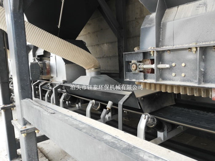 脈沖除塵器定時清灰,清落的粉塵由回粉螺旋送至干燥滾筒進料皮帶,重新回收利用。