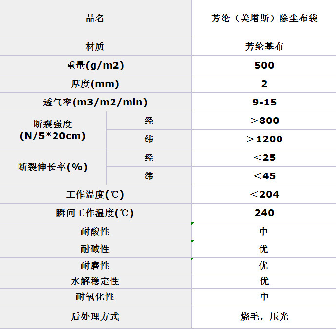 瀝青攪拌站美塔斯除塵布袋可在204度下連續(xù)使用,并可承受反復(fù)的250度瞬時(shí)波動(dòng)溫度,尺寸穩(wěn)定性好(250度時(shí)熱收縮率1%),防火性能好,400度時(shí)才分解碳化,不自燃也不助燃,低濃度的酸堿和大多數(shù)碳?xì)浠衔飳?duì)它無(wú)影響,良好的化學(xué)性,適用于瀝青混凝土攪拌瀝