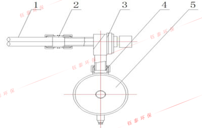1、噴吹管  2、橡膠連接管  3、電磁脈沖閥  4、氣包連接管 5、氣包